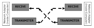 Pengiriman dan penerimaan data kabel silang (Crossover Cable) dari komputer ke komputer sebagai berikut:
